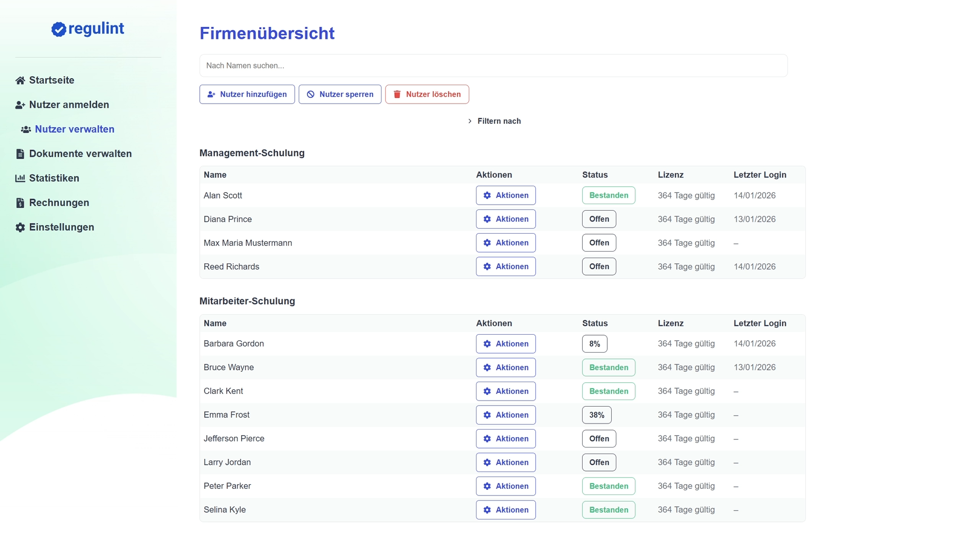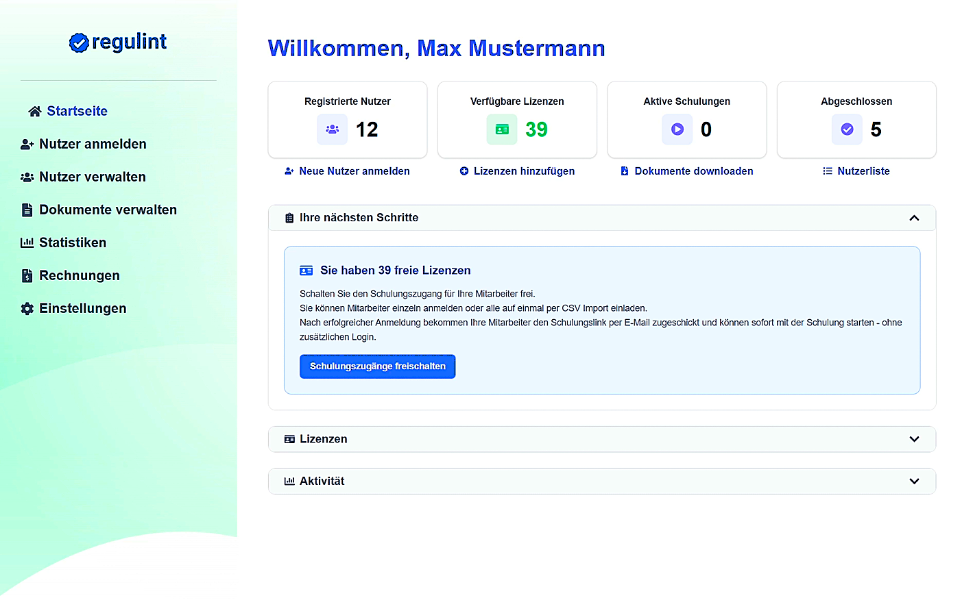 Benutzerfreundlichkeit steht bei uns im Mittelpunkt. Die Administration über die Regulint-Plattform ist für Sie ohne Hürden möglich.